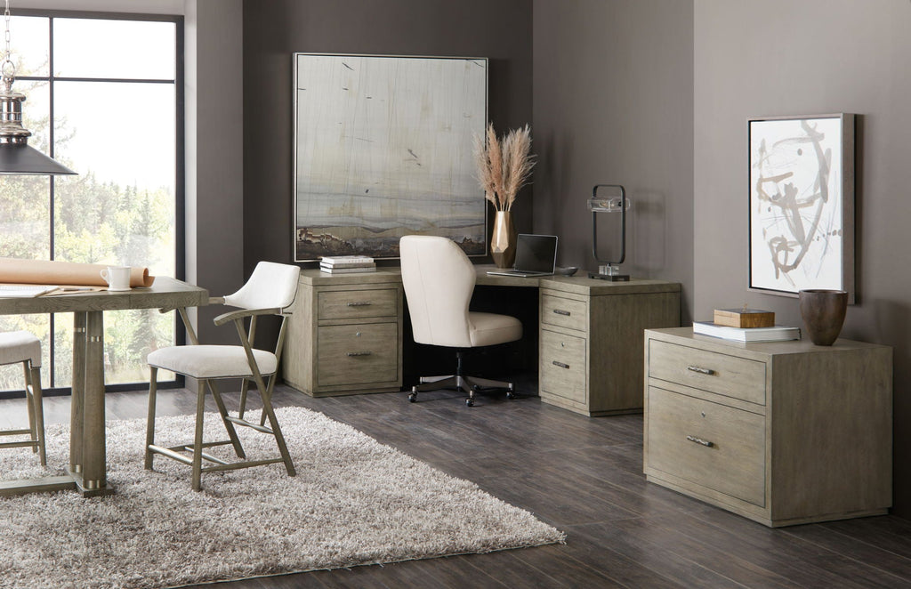 Capturing the essence of nature’s organic color palette and the aura of a rustic mountain cottage, Hooker Furniture introduces the Linville Falls collection. The whole home collection is designed for younger consumers looking for casual and contemporary furniture. Characterized by its rustic, weathered finish and clean lines paired with organic grain patterns, Linville Falls is constructed with split oak solids and veneers and has an overall organic aesthetic. It is featured in a soft Smoked Gray finish mixed with a Charred Black finish that is achieved through Shou Sugi Ban, a Japanese technique that creates an elegant burnt wood look. Its moderate scaling and fresh silhouettes offer a refreshing juxtaposition mixing old with new.