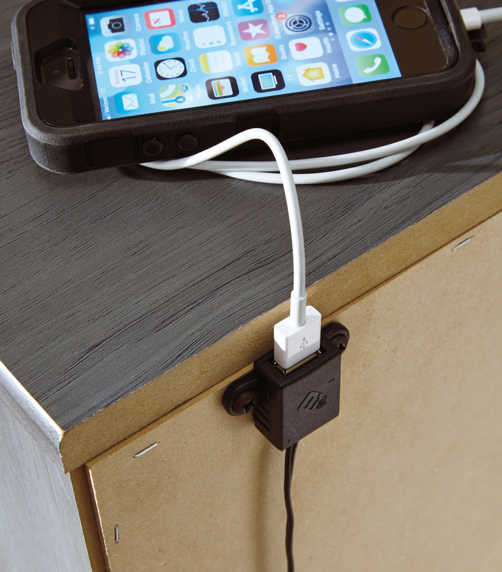- Drawer interiors are lined with a faux linen laminate for a clean finished look.