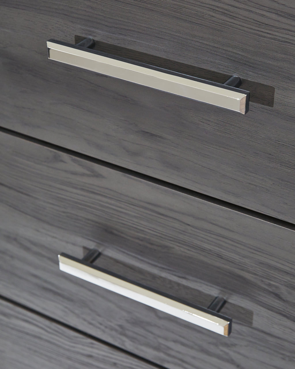 - Drawer interiors are lined with a faux linen laminate for a clean finished look.
