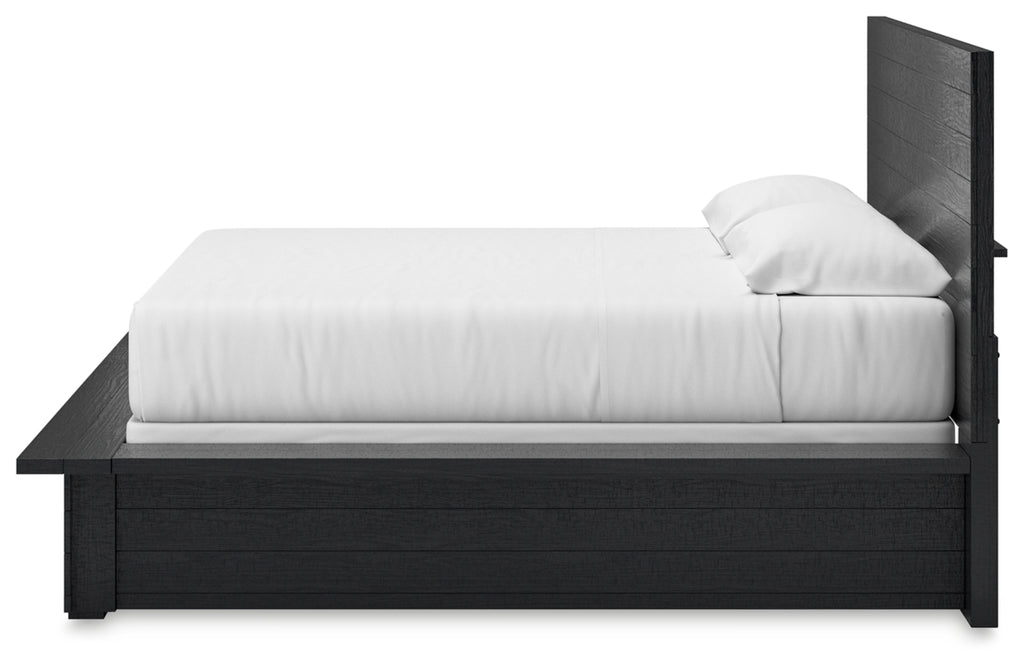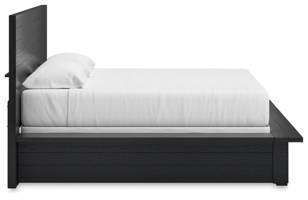 - The all wood platform bed features extra wide rails for a bench-like wrap around.