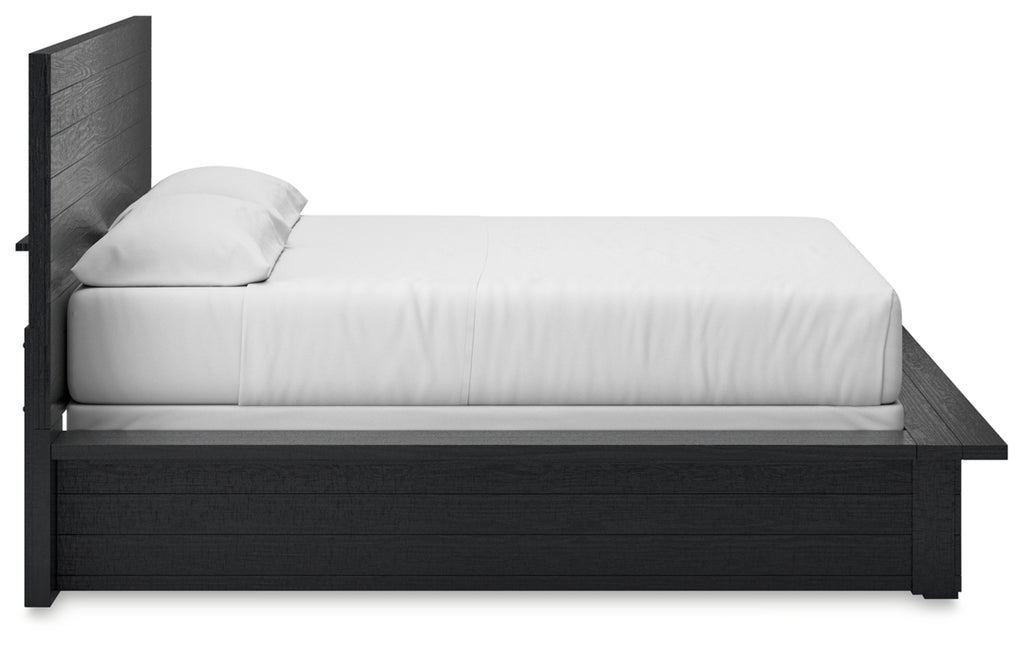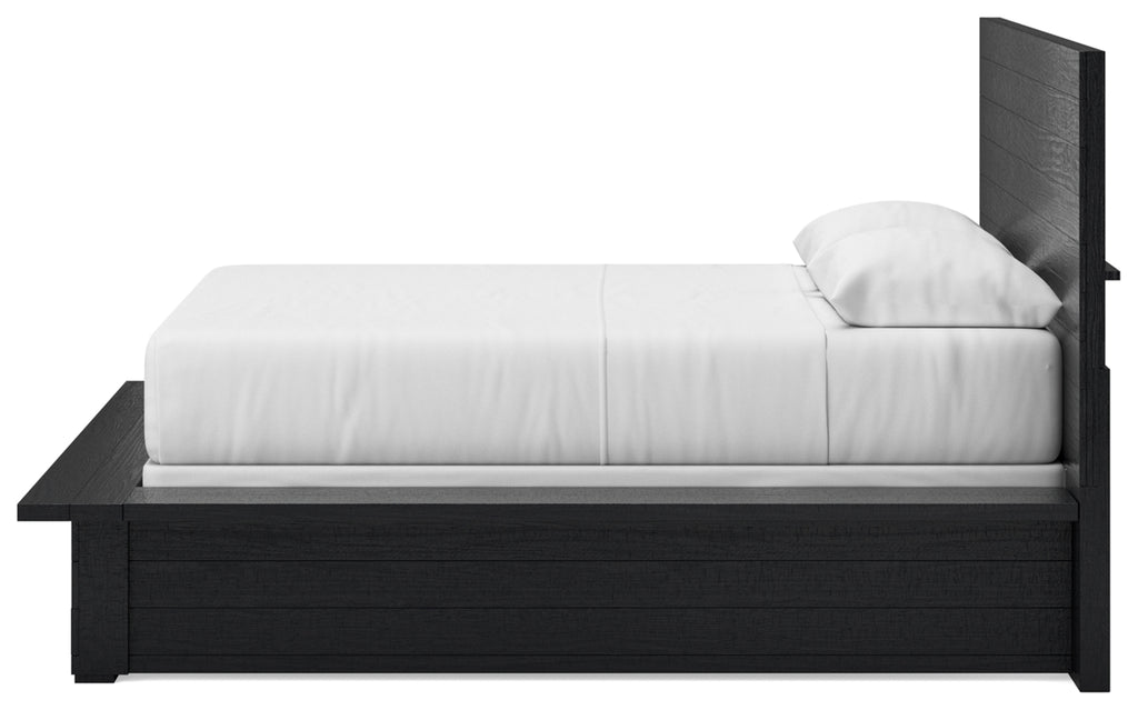 - The all wood platform bed features extra wide rails for a bench-like wrap around.