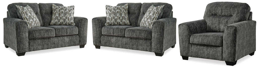 This pair of loveseat and matching chair set speaks to those drawn to fresh, contemporary style with richly neutral appeal. Subtle and sophisticated, the plush upholstery and dark tri-block legs are a natural complement for so many color schemes. Two accent pillows make the seating even more welcoming. Curling up on this loveseat to enjoy a night in is never out of the question.