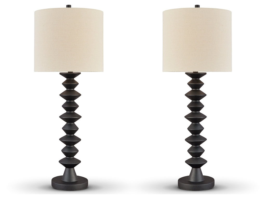 hed new light on your existing decor. This buffet lamp set's geometrically-inspired base is adorned in striking black for that pop of contemporary flair you love. Perfect for a console table or mantel, it beautifully brightens living areas, bedrooms or entryways.