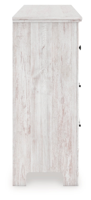 Looking to create a bedroom that feels airy and beautifully put together? This casually comfy dresser is your perfect solution. Its clean lines, whitewash finish and replicated pine grain exude a charming cottage-inspired feel that brightens your restful retreat. Six spacious drawers with simple dark bronze-tone knobs stow away clothes and more. Now there’s a fresh take on country living we can get behind.