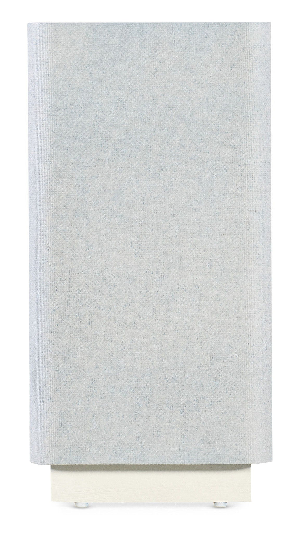 Serene and stylish with a spa-like color scheme, the modern Atlantis Accent Table has a small compact footprint, rounded corners, a painted tempered glass top, raffia-wrapped exterior and white plinth base. The top is painted in a creamy white, and the raffia wrap is in a pale blue tone inspired by Caribbean beaches.