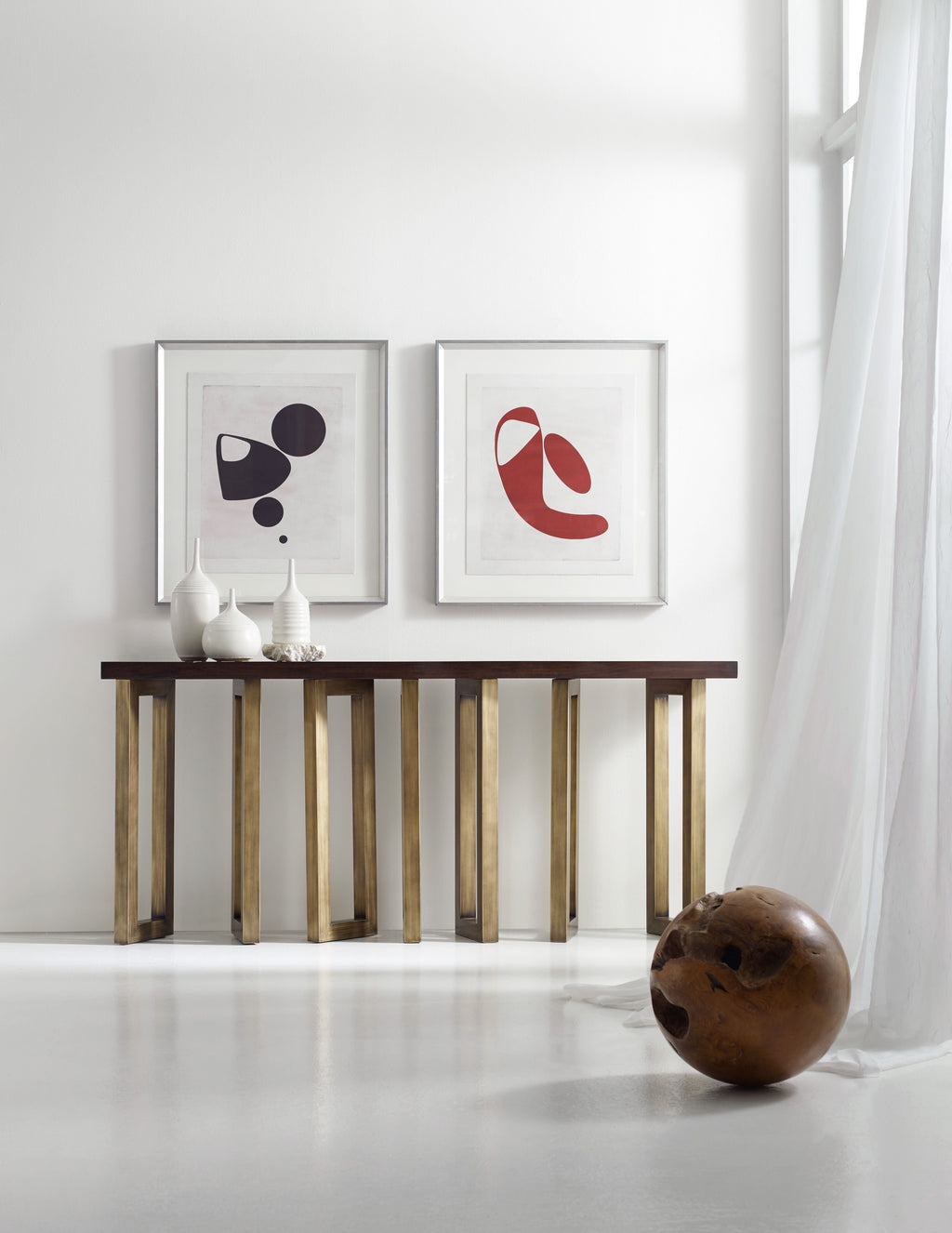 An abstract art lover’s dream, the Connelly Hall Console has an organic beauty, combining a Cathedral Black Walnut Veneer top and a random-pattern metal base in a soft, earthy gold finish. Come closer to Melange, and you will discover something unexpected, an eclectic blending of colors, textures and materials in a vibrant collection of one-of-a-kind artistic pieces.
