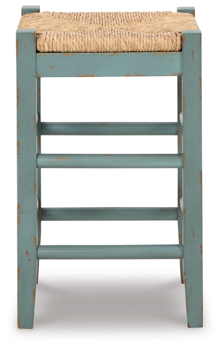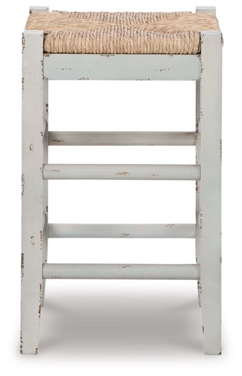 Bring the vintage casual vibe you love to the kitchen with this counter height bar stool set. A stylish seating solution in a white rubbed-through finish, the charming stool completes your dining space with ease. Its woven synthetic wicker seat and wood stretchers create an effortlessly beautiful look with endless possibilities.