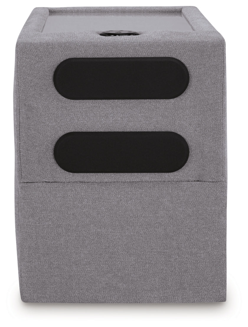 - One of the consoles are offered with bluetooth and audio sound system with pull out storage drawer and plexiglass top.