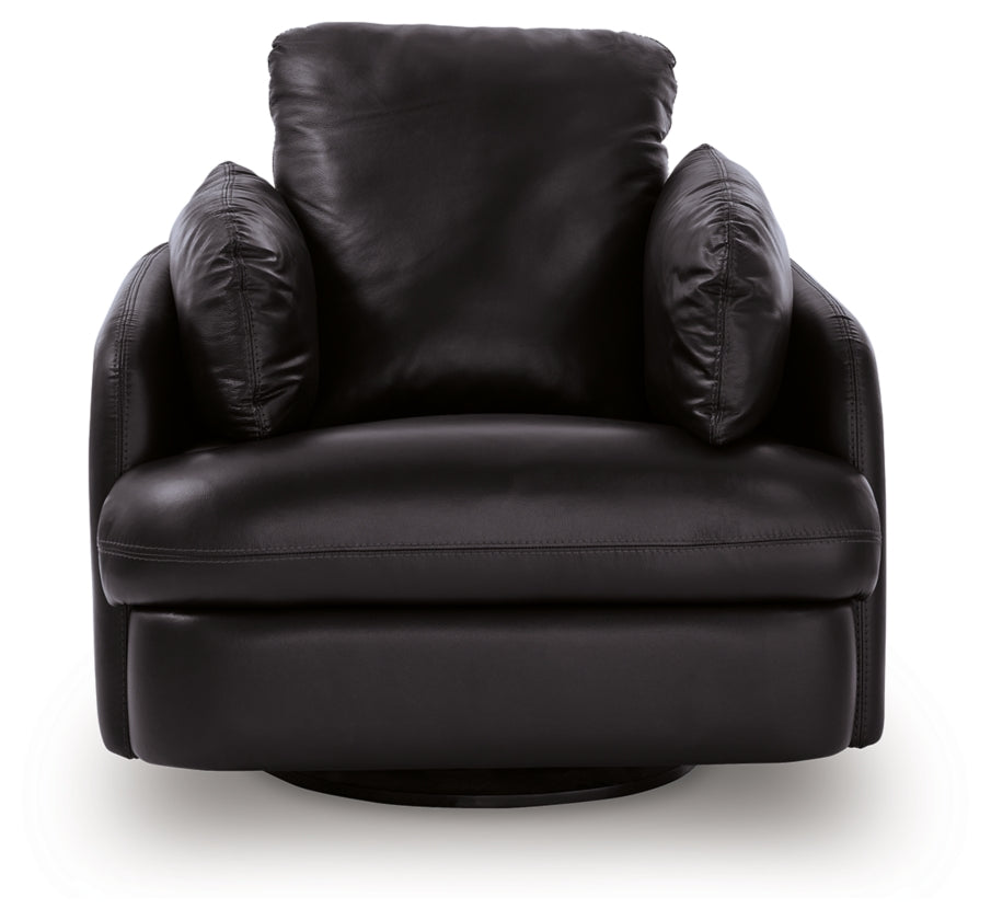Looking cool and contemporary is great. But when it comes down to it, you’re all about affordably luxurious lounging. With the top grain leather and expertly matched faux leather on this swivel glider recliner, you get the sleek look you love without breaking the bank. Its easy one-pull reclining motion effortlessly brings you to a reclined and relaxed position. So grab some popcorn, settle in and enjoy the show.