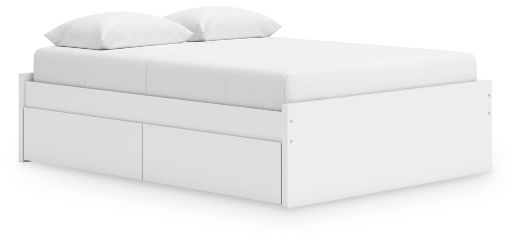 Create the modern bedroom of your dreams. This queen platform bed with storage offers a minimal design with maximum style, combining ultra-clean lines and an easy-elegant solid white finish with a hardware-less aesthetic. Spacious storage drawers with ball-bearing glides make putting things away a snap. And this bed doesn't need a box spring or foundation, so you can splurge on a mattress that's sure to carry you away to a soothing place.
