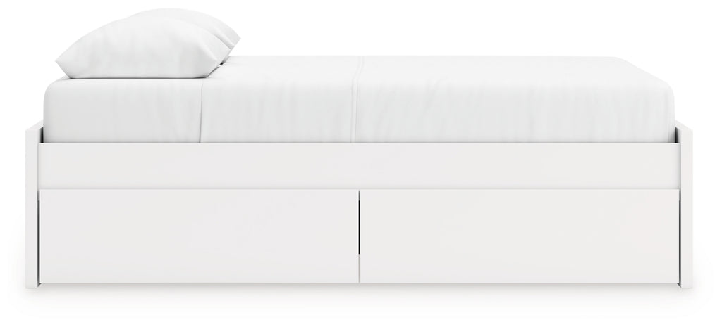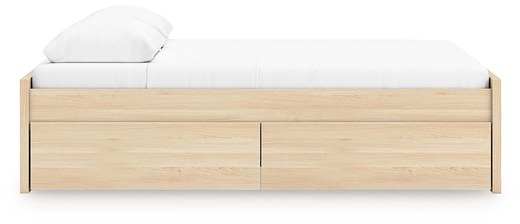 - Includes platform bed panels, platform rails, roll slats and 2 side storage drawers