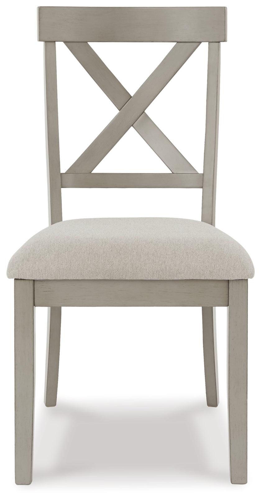 Bring a relaxed yet refined sense of good taste to a space with this wonderfully comfortable set of 2 dining chairs. Clean-lined frame sports a gray finish that’s so easy on the eyes. Covered in a complementary textured beige fabric, the chair’s cushioned upholstered seat goes easy on the body. And with classic X-back styling, this chair is an inspired choice for modern farmhouse living.