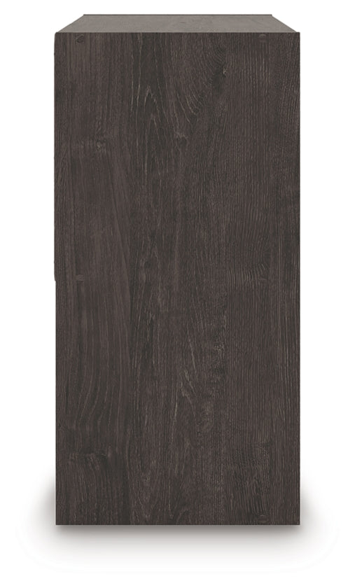 - Dark charcoal finish over replicated oak grain with authentic touch.