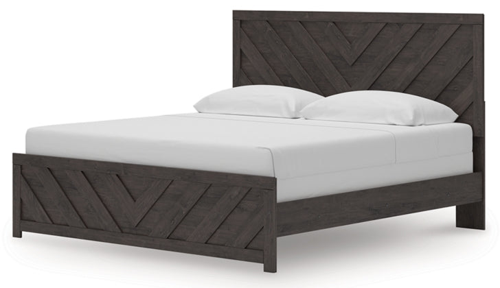 Designed with everyday style in mind, this king panel bed is a simply chic approach to modern living. A dark charcoal finish blends black and brown undertones to create a versatile look that effortlessly pairs with your existing pieces. And for an extra dash of trend-right style, the headboard is dressed in a playful chevron pattern.