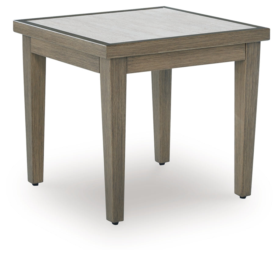 Experience the perfect combination of durability and style with this outdoor end table. An aluminum frame with a wood-look finish maintains a sleek, contemporary aesthetic, while the sintered stone tabletop adds an element of natural elegance. This delightful companion to your outdoor seating creates an oasis where comfort and beauty thrive.