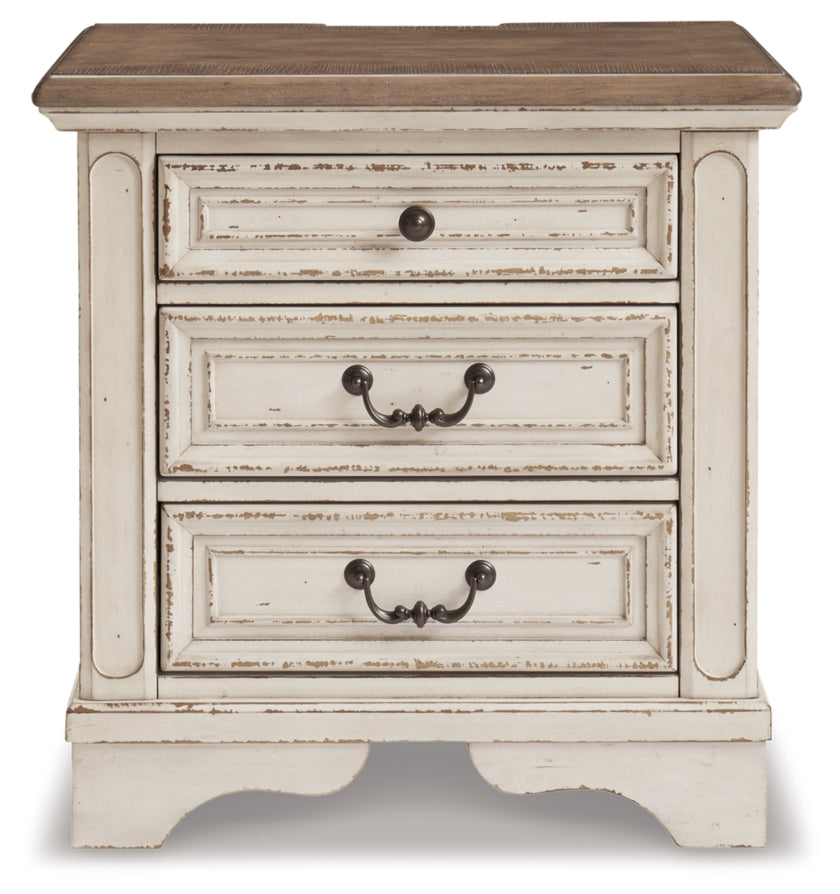Elevating the art of traditional cottage styling, this bedroom package is your dream bedroom retreat realized. Its antiqued two-tone aesthetic blends a chipped white with a distressed wood finished top for added charm.