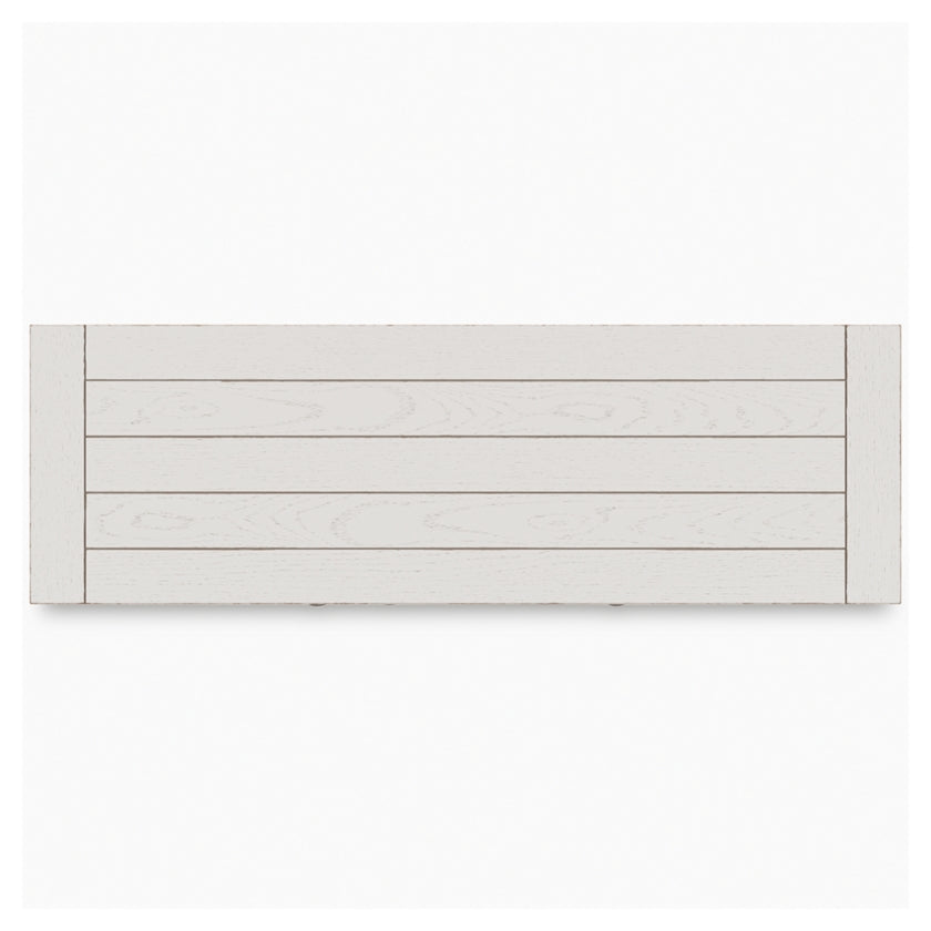 - Antiqued white finish with wood grain texture