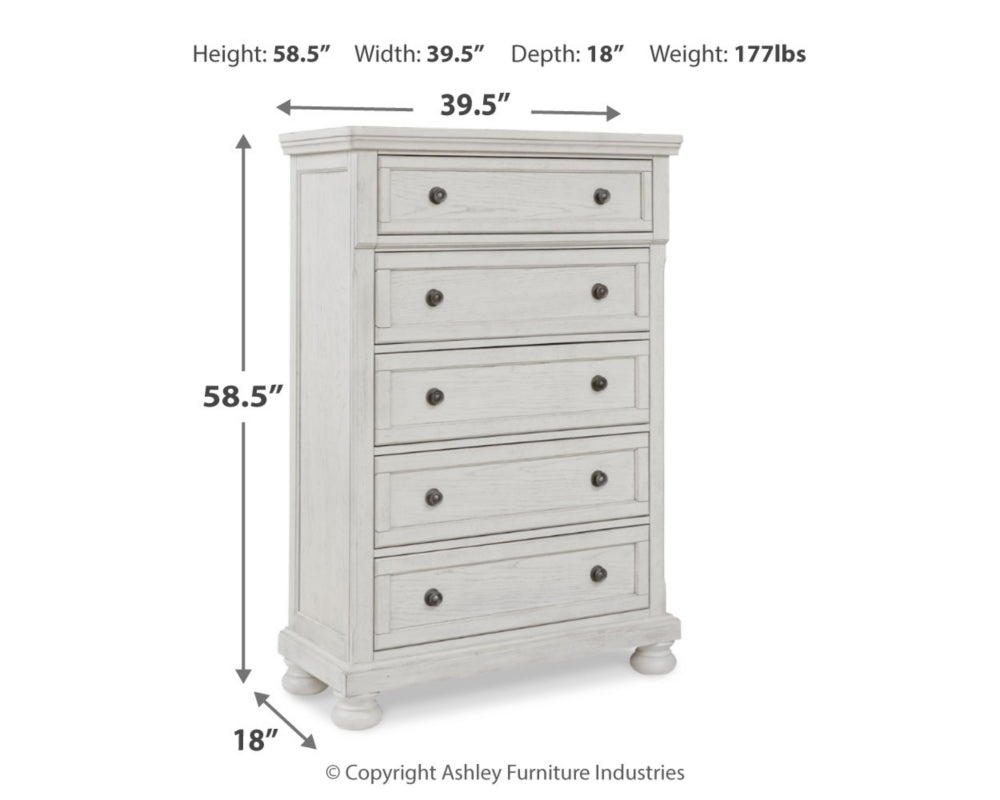 - Item Name: Robbinsdale Queen Panel Storage Bed, Dresser, Mirror and Chest
