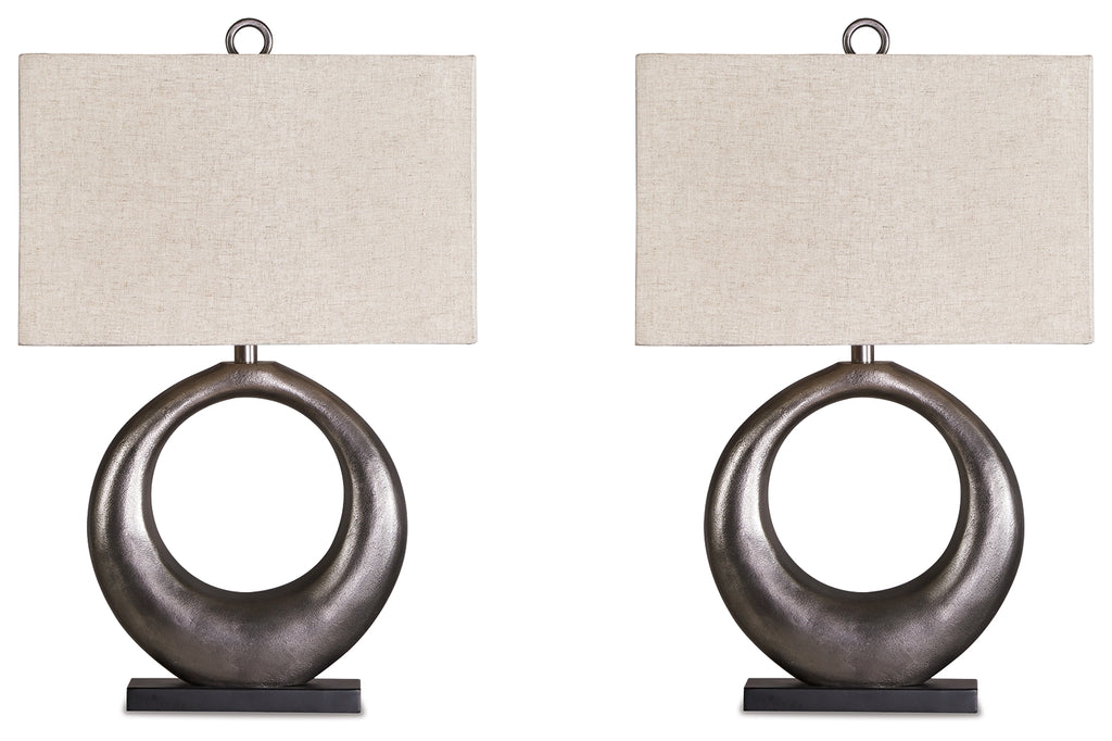 Part sculpture and totally beautiful, this table lamp set lets you delight in the art of lighting. The aesthetic may be contemporary and refined, but its antique silvertone cast aluminum infuses a raw element for beautiful balance.