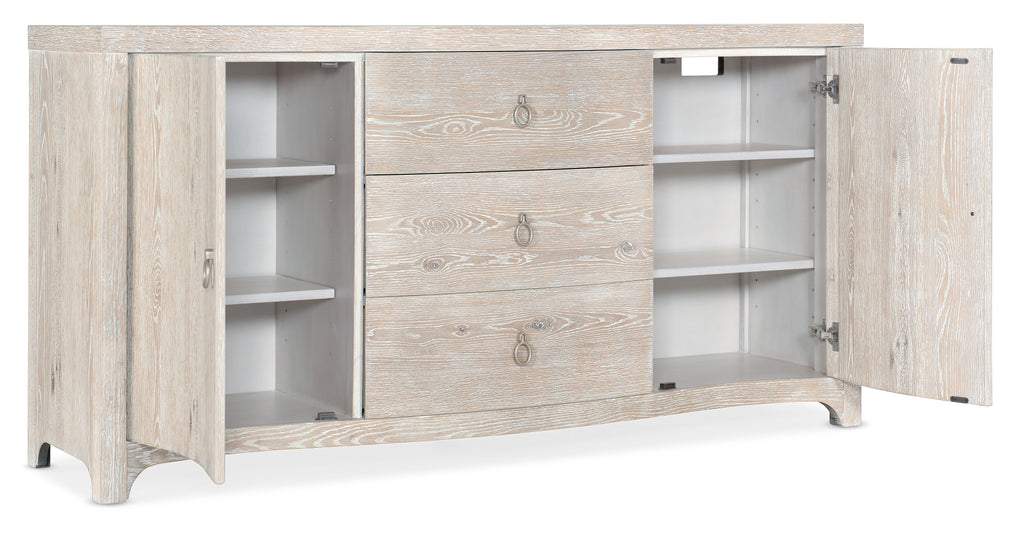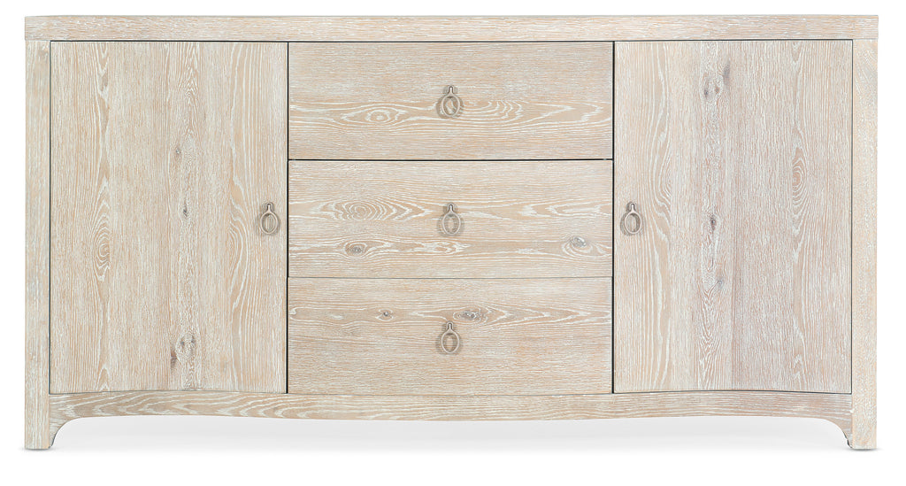 Designed to create a comfortable and inviting retreat within the home, the Serenity collection is defined by its casual finishes and variety of organic textures and materials that combine to deliver a relaxed aesthetic. Inspired by casual, waterfront living, the collection was designed to bring the relaxed aura of the outside in -- no matter where the consumer lives. White oak veneer delivers two key finishes – a whitewashed look and a weathered gray – and is accented with shades of soft coastal blue, sand blasted pine and soft white bronze metal details. Organic materials including abaca rope, natural stone, painted grass cloth, louvered details, and faux coral motifs add to its casual style. The collection’s silhouettes were designed to reflect three distinct personalities – a traditional nature with serpentine shaped case pieces and a softer aesthetic, a modern persona with linear shapes and coral accents, as well as a more casual contemporary character with soft-edged case pieces and organic surfaces.