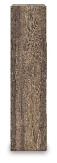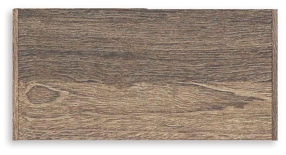 - Weathered brown finish over replicated oak grain with authentic touch