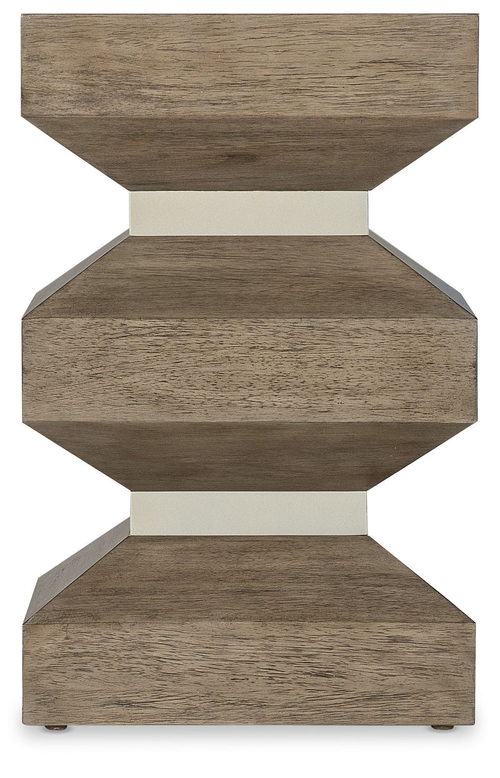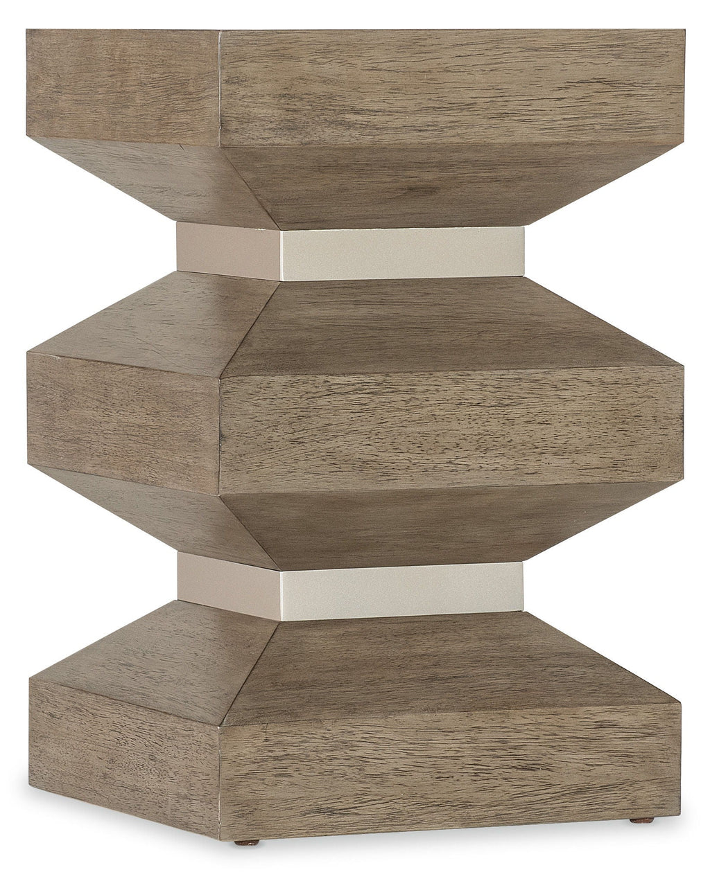 Symmetrical and chic, the Sonnet Square End Table design is a chunky geometric shape with two satin-finished metal waistbands. In a convenient, compact footprint that’s 16 inches square, it is crafted of Quartered and Cathedral-Cut White Oak Veneers in a light earthen-toned finish.