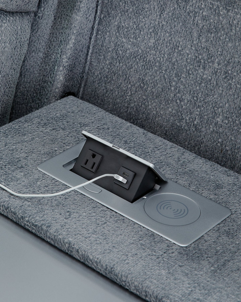 Chill-out time has never looked better. This power seating package's adjustable headrests ensure a perfect view of the TV no matter how far back you recline, taking your comfort to the next level. Handy charging features put e-readers and cell phones at your fingertips. And softly textured chenille upholstery and ambient LED lighting complete the theater-style experience. It's time to relax, nap or binge watch in the best seats in the house.