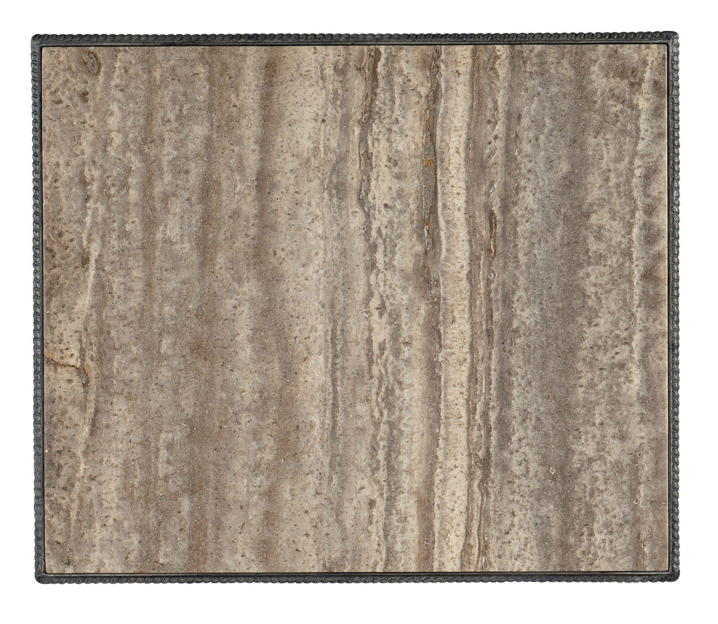 - Stone veneer top with metal base