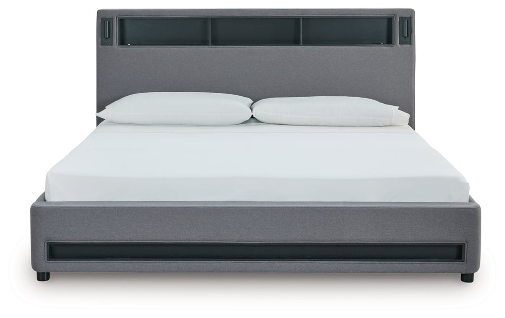 Snooze in style with this California king upholstered bed. It brings delightful function to winding down before bedtime, with an adjustable LED reading light on each side. And for added flair, multicolored ambient lighting brings an ultra-cool vibe to the overall look. Combining modern convenience with captivating design, this bed revamps your restful retreat like never before.