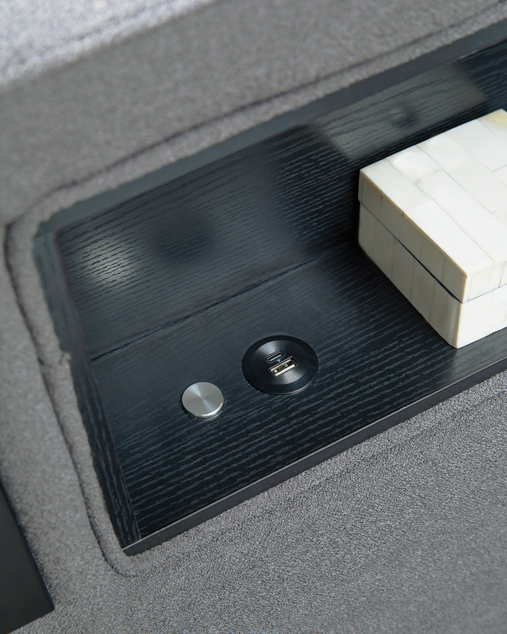 - USB charging ports convenient located on the shelf for charging of devices overnight.