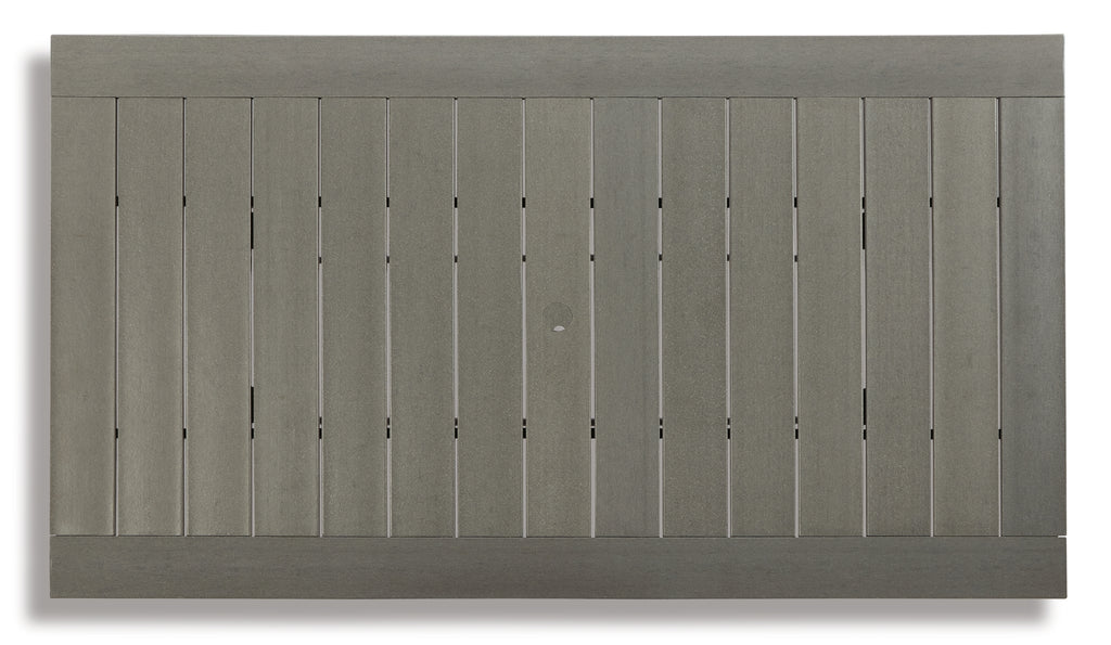 It’s the dawn of a new day for gray. Embrace the style trend with this outdoor dining set. Each piece is crafted of HDPE material, combining the exceptional durability and weather resistance you need with the "wood look" you love. The rectangular table and comfortably cushioned chairs take alfresco living to a whole new level. A slatted table top infuses a plank-style, farmhouse-inspired touch and naturally sheds rainwater. Rest assured, the thick seat and back cushions on the chair are wrapped in Nuvella® high-performance fabric that’s fade-resistant, stain-resistant and a breeze to clean.