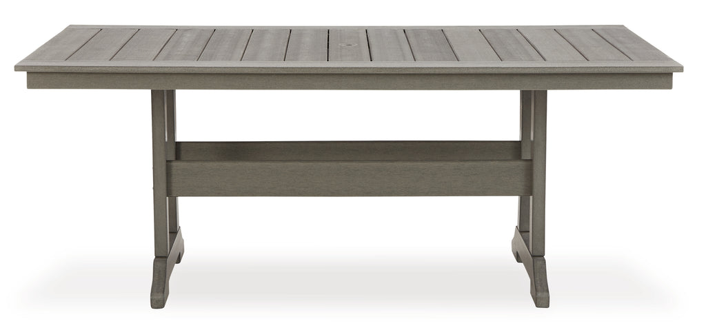 It’s the dawn of a new day for gray. Embrace the style trend with this outdoor dining set. Each piece is crafted of HDPE material, combining the exceptional durability and weather resistance you need with the "wood look" you love. The rectangular table and comfortably cushioned chairs take alfresco living to a whole new level. A slatted table top infuses a plank-style, farmhouse-inspired touch and naturally sheds rainwater. Rest assured, the thick seat and back cushions on the chair are wrapped in Nuvella® high-performance fabric that’s fade-resistant, stain-resistant and a breeze to clean.