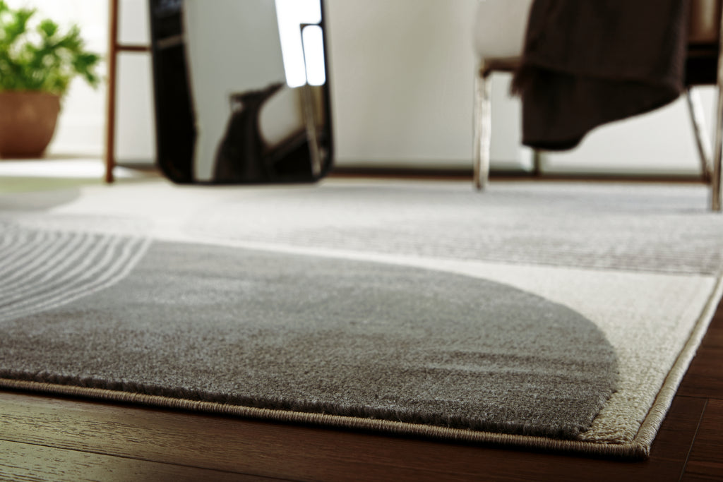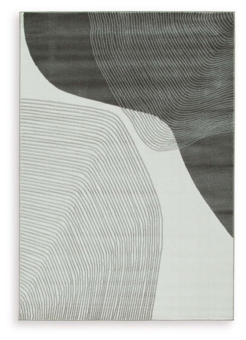This area rug showcases a swirling abstract motif for a modern look. Providing a soft feeling underfoot, it gives flowing dimension to your hardwood or tile floors. It's a perfect fit for any home needing an extra touch of contemporary energy.