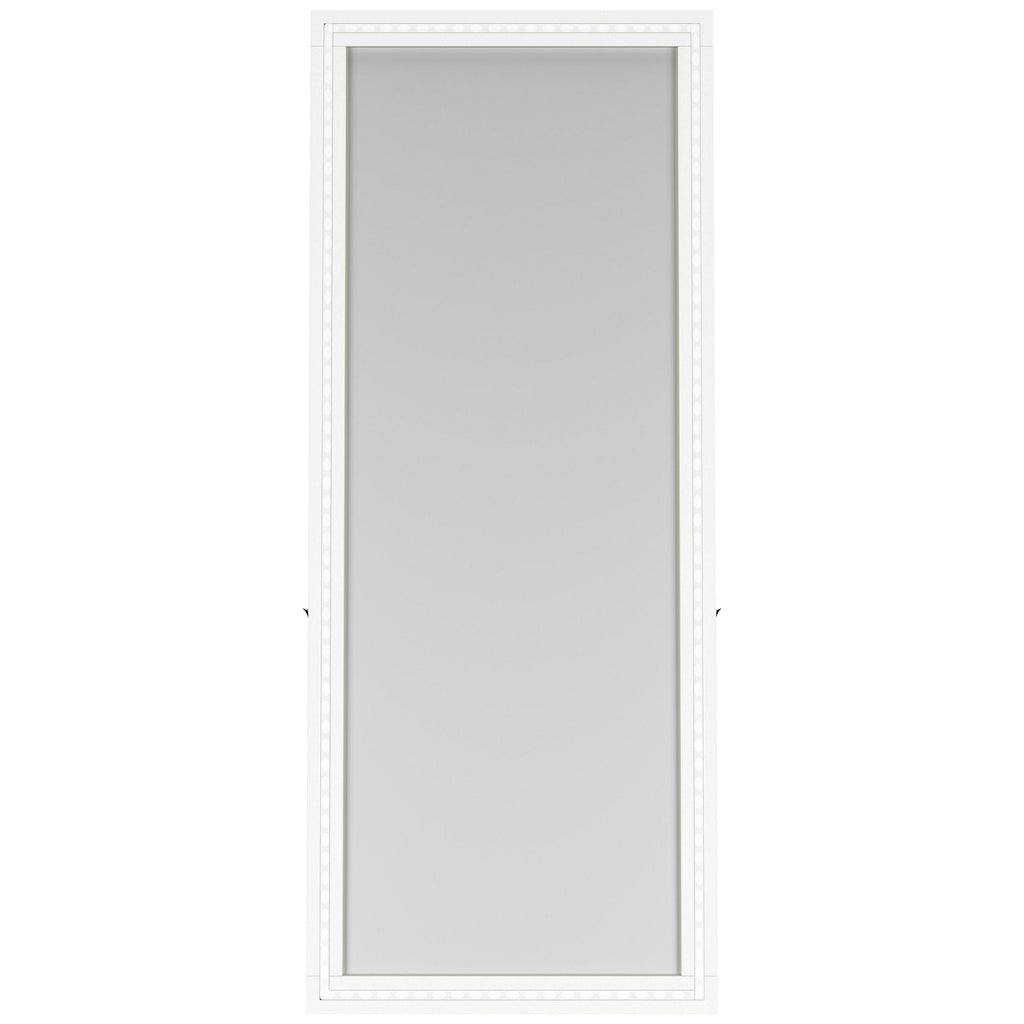 Dress up a dressing area or seating group with the glamour of a modern floor mirror. The full length design features a decorative frame complete with a support leg or its freestanding, perfect for defining an open living space or offering dimension elsewhere in your home. The mirror includes LED lighting, creating an inviting ambiance while providing light perfect for selecting jewelry or choosing your outfit. It features a neutral finish with silver trim that gleams in the light, creating a sense of depth and dimension. Choose the perfect spot for this freestanding floor mirror.