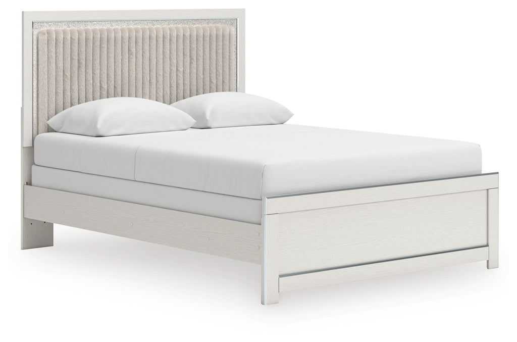 If glitz and glam are your jam, you’re gonna love this queen upholstered panel bed. Gleaming glitter and dazzling chrome-tone touches are paired with tufted gray faux fur for a stunning pop of pizzazz. Loaded with chic flair and serious sparkle, it's a simply splendid way to wake up your inner sanctum’s style.